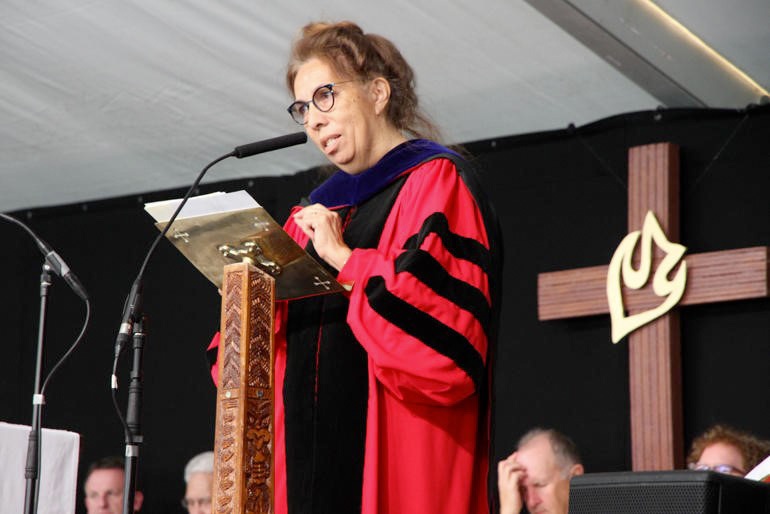 The Ven. Numia Marama Tomoana (BTheol, MTheol) was born and raised in Heretaunga (Hastings) and now, as Minita a Rohe, feels blessed to live in the vicarage next door to Waipatu Marae and homestead where she and her whānau grew up.